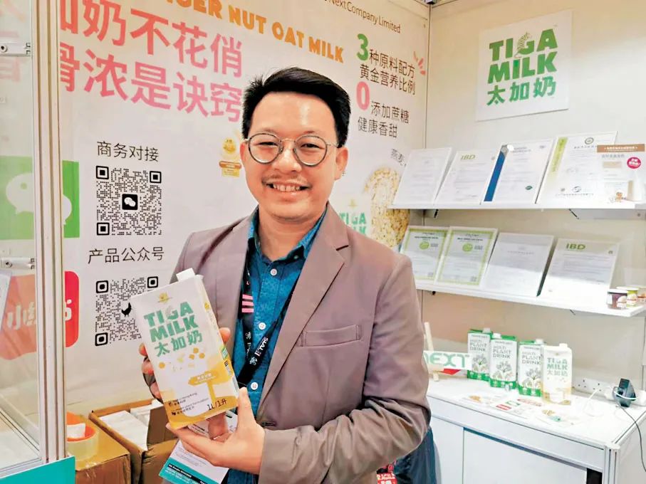 “我們立足于香港科技園,通過3年的研發,打造出這款植物基奶‘太加奶‘,因為具有港式奶茶的香滑,現在香港已有超過100家奶茶店使用了我們的產品。”益創膳COO陳家銘介紹。