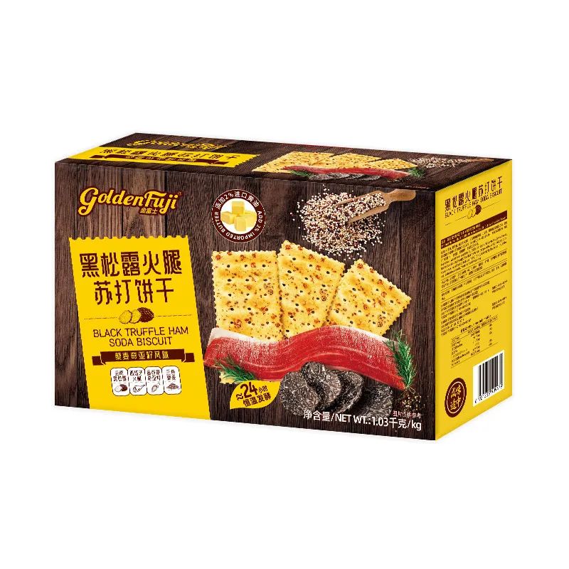 在創新餅干外形的同時,金富士也更加注重餅干的營養與口味。例如公司的黑松露蘇打餅干,選用云南黑松露、西班牙火腿、墨西哥奇亞籽和三色藜麥等優質原材料,添加2%的進口黃油,歷經約24小時的恒溫發酵,成就了餅干的酥脆口感。而且0蔗糖添加,契合了現代消費者對健康飲食的追求。