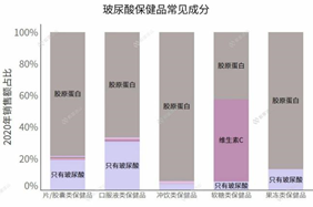 與此同時(shí),在玻尿酸保健品當(dāng)中,玻尿酸常常是與其他成分一起出現(xiàn)的,尤其是膠原蛋白,出現(xiàn)頻率非常高。對于單獨(dú)補(bǔ)充玻尿酸的保健品,消費(fèi)者并沒有很心動。與其他成分強(qiáng)綁定,才能更為消費(fèi)者接受。