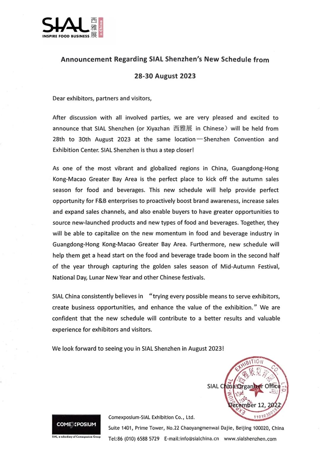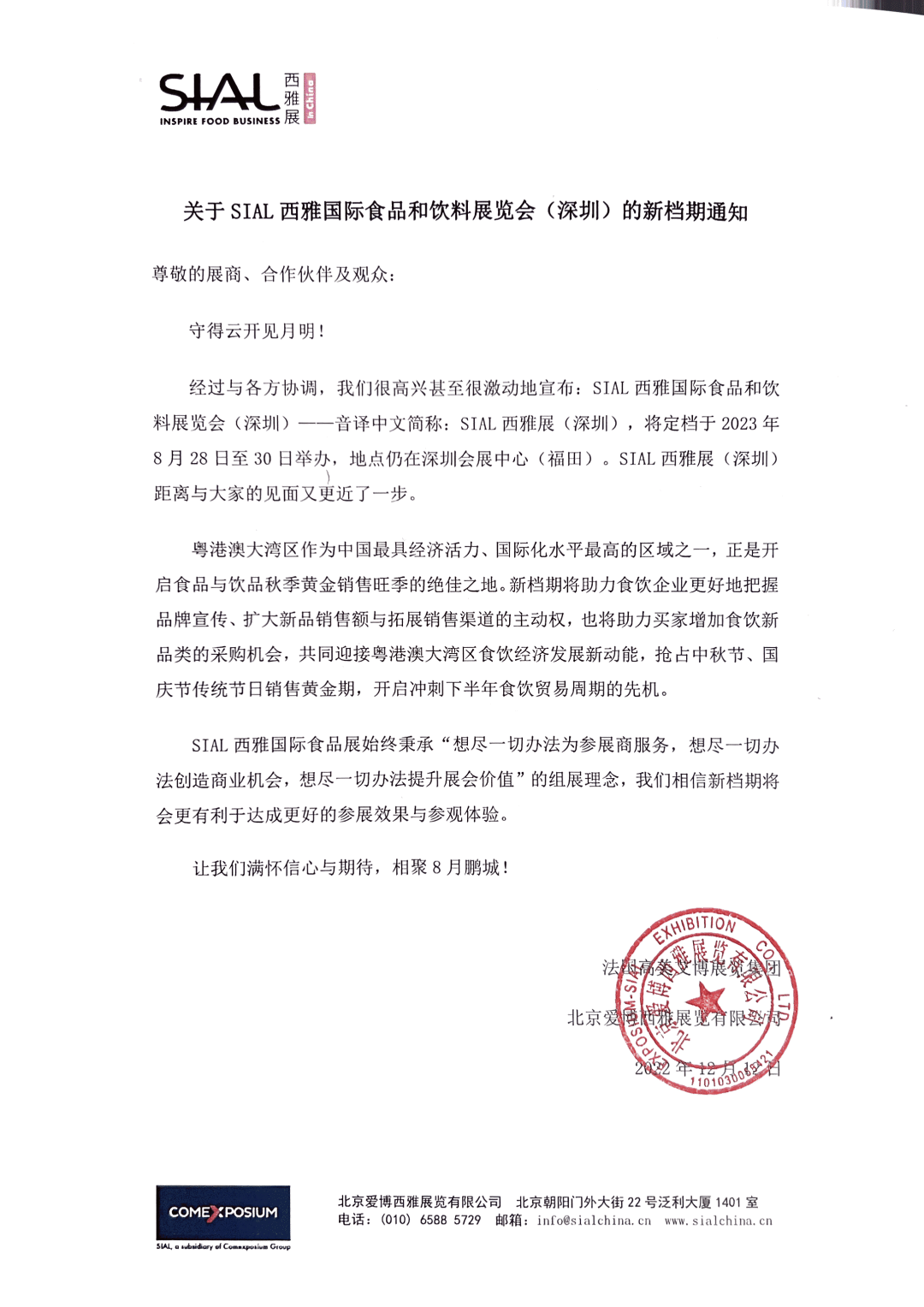 SIAL西雅國際食品展(深圳)的新檔期通知:2023年8月28日-30日舉辦