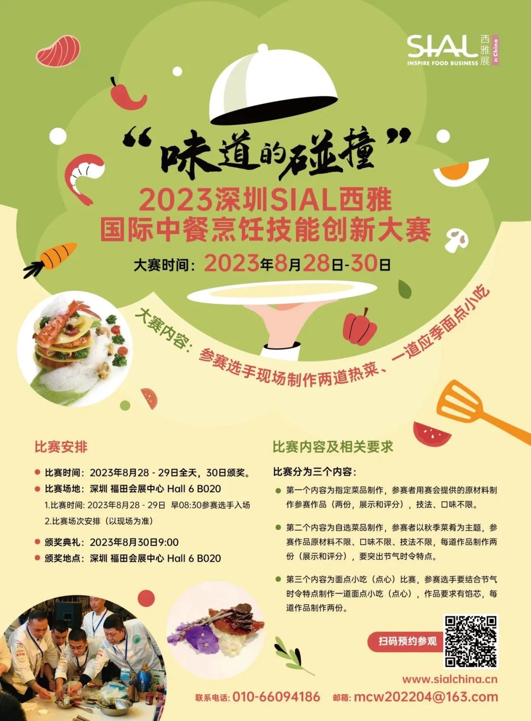 為倡導創新發展,滿足消費者不斷升級的口味需求,助推中餐業高質量發展,在8月28日—30日召開的SIAL西雅展(深圳)將隆重舉行“味道的碰撞”-2023深圳SIAL西雅國際中餐烹飪技能創新大賽。