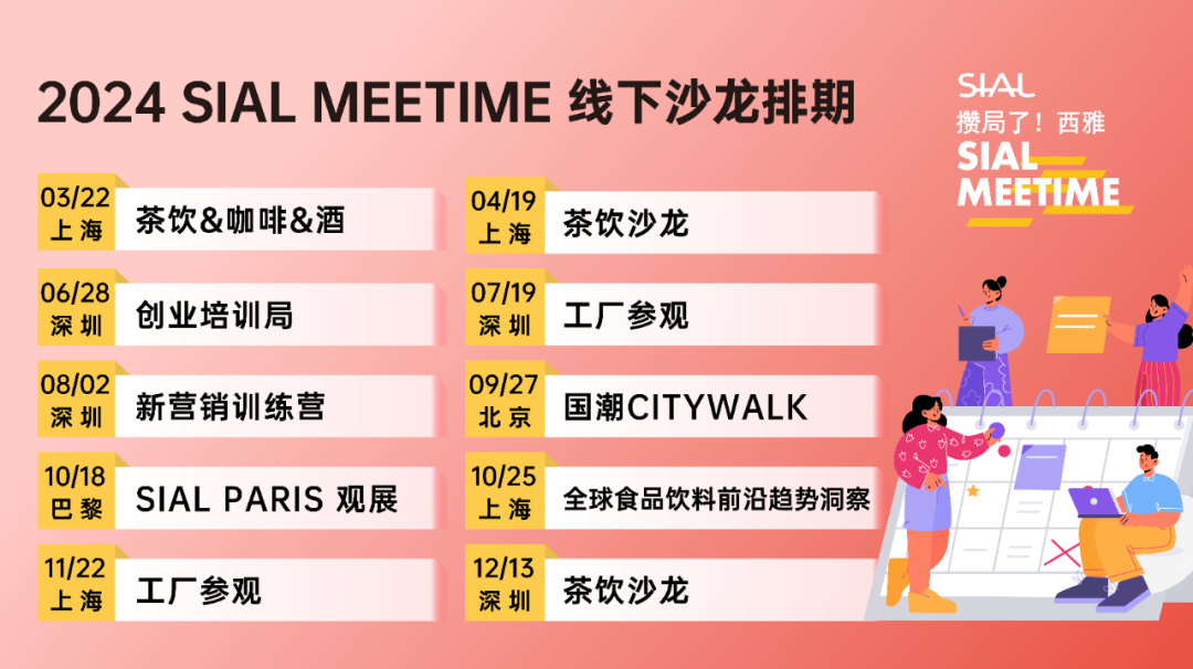 2024 SIAL Meetime 攢局了!西雅,將深耕食飲行業幾大熱門板塊,圍繞食飲人聚焦話題深度探討。召集食飲伙伴、精英群體拓建合作關系,結識商業人脈,把握風口機遇,以更高效能突出重圍,提高品牌聲量。
