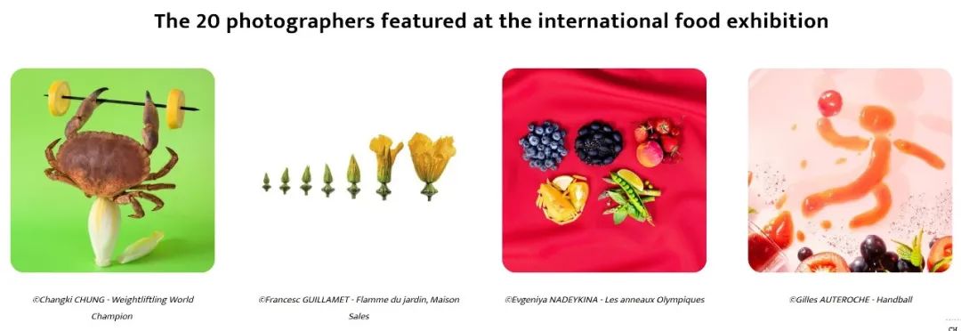 在美食大師紀堯姆·戈麥斯的支持、米其林三星級廚師亞歷山大·馬齊亞的贊助,以及新鮮水果和蔬菜專業(yè)協(xié)會INTERFEL的合作下,本次活動邀請了來自法國及國際的20位專業(yè)攝影師,每位攝影師都以一組三聯(lián)畫來表達他們對“運動與美食”這一主題的獨特見解。